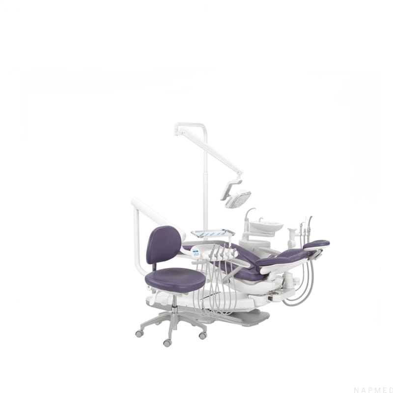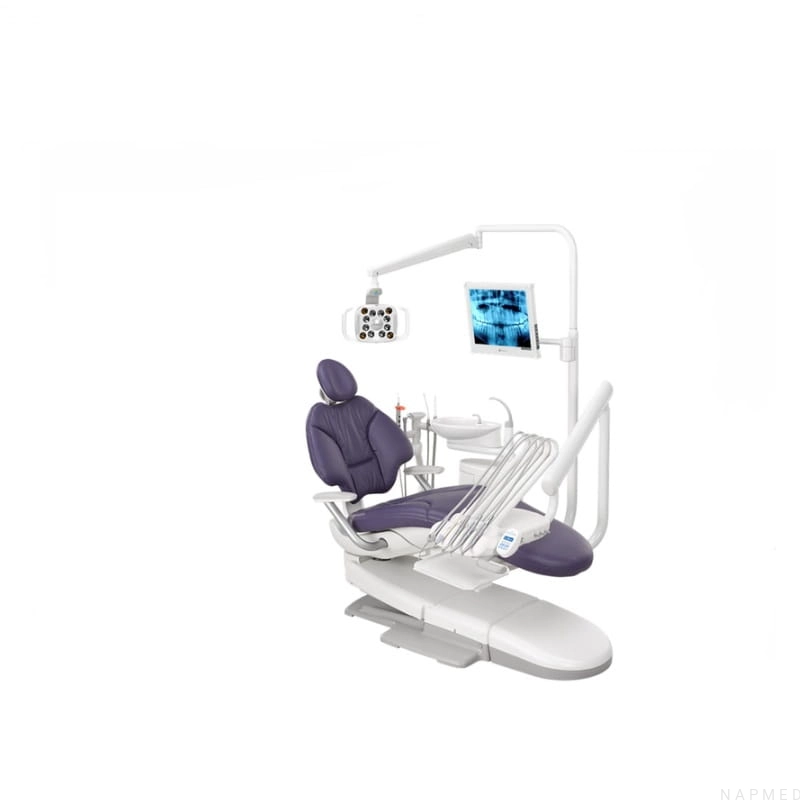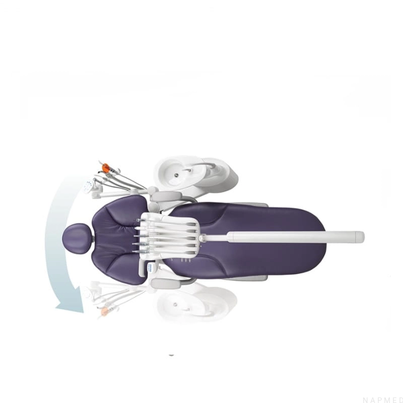 Wyjątkowo cienkie oparcie fotela dentystycznego i funkcja obrotu bloku spluwaczki wokół niego znacznie ułatwia dostęp do pacjenta. Stanowisko asysty wyposażone jest w przegubowe ramię z regulacją wysokości, co umożliwia optymalny dostęp do pola zabiegowego.