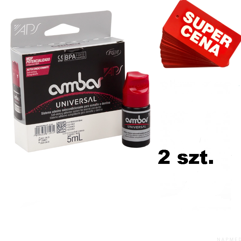 - za pomocą aplikatora nałożyć klej wcierając pierwszą kroplę preparatu przez 10 sek., następnie nałożyć kolejną warstwę Ambar Universal APS na 10 sek.
