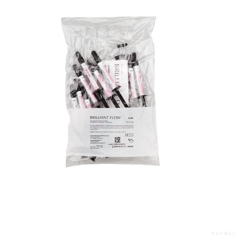 Brilliant Flow to płynny kompozyt o nanocząsteczkowej budowie. Posiada doskonałe właściwości tiksotropowe, dzięki czemu możliwa jest łatwa aplikacja i dobre zapływanie w ubytku. Stabilna konsystencja zapewnia utrzymanie produktu w miejscu aplikacji. Materiał cechuje niski skurcz polimeryzacyjny, co mniejsza ryzyko powstania mikroprzecieku na granicy wypełnienia z tkanką zęba. Dzięki zastosowaniu technologi Duo Shade wykonane wypełnienia odznaczają się wysoką estetyką. Kompozyt naturalnie dopasowuje się do tkanek zęba, dając tzw. "efekt kameleona". Wypełnienie kontrastuje w promieniach rtg.