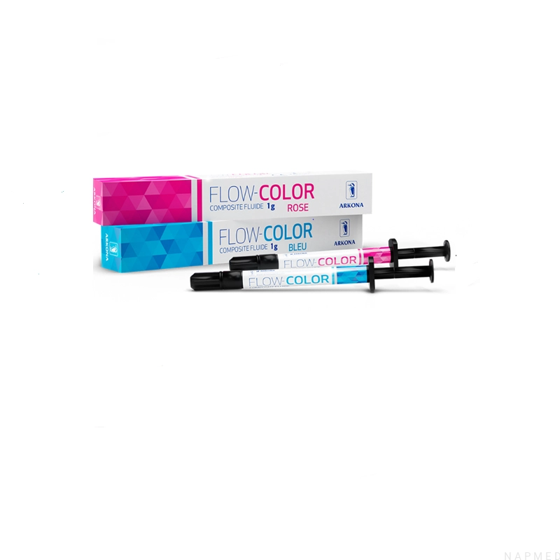 Zastosowanie: wypełnienia w zębach mlecznych i stałych, lakowanie zębów mlecznych i stałych, szynowanie tymczasowe, markowanie ujść kanałów, utrzymywanie przestrzeni międzyzębowej, podnoszenie wysokości zwarcia, ubytki klas I, II, III, IV i V wg. Blacka, mocowanie tymczasowe szyn i retainerów, poprawa estetyki w miejscach wymagających użycia kolorów nie zębowych, Zalety: szeroka gama zastosowań, 9 kolorów do wyboru, zadowolenie małych pacjentów, zdobywca nagrody Grand Prix CEDE, stosowanie Flow - Color podczas tymczasowego szynowania lub zakładania retainerów, pozwala na wyraźne zaznaczenie granicy pomiędzy kompozytem i zębem, eliminując ryzyko popełnienia błędu, przy usuwaniu mocowań tymczasowych, ochronne znakowanie granicy szkliwa, przy podnoszeniu wysokości zwarcia, umożliwia usunięcie kompozytu bez naruszania powierzchni zęba, stosowanie flow color do lakowania zębów, umożliwia rodzicom samodzielną kontrolę obecności laku na zębach, kompozyt umożliwia wykonywanie wszelkiego rodzaju podbarwień i imitacji przywracających naturalny wygląd zębów i dziąseł w miejscach wymagających użycia kompozytów w kolorach nie zębowych, dobra wytrzymałość mechaniczna, wysoka stabilność koloru, wysoka odporność na wilgotne środowisko jamy ustnej, doskonała polerowalność, kontrastowość na zdjęciach RTG