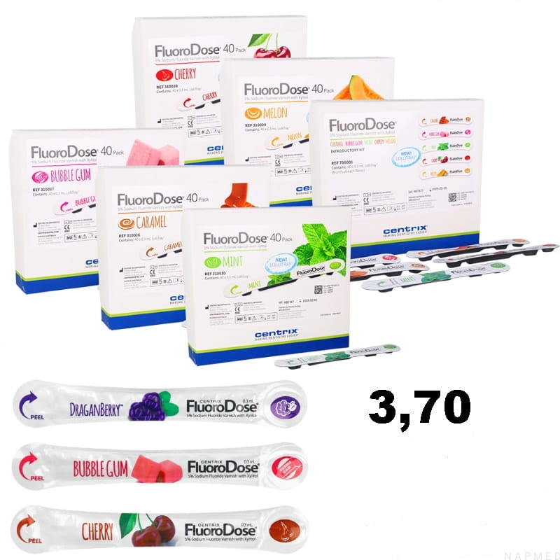 Opakowanie zawiera: Fluorodose 50 szt. Centrix w wariancie mix.