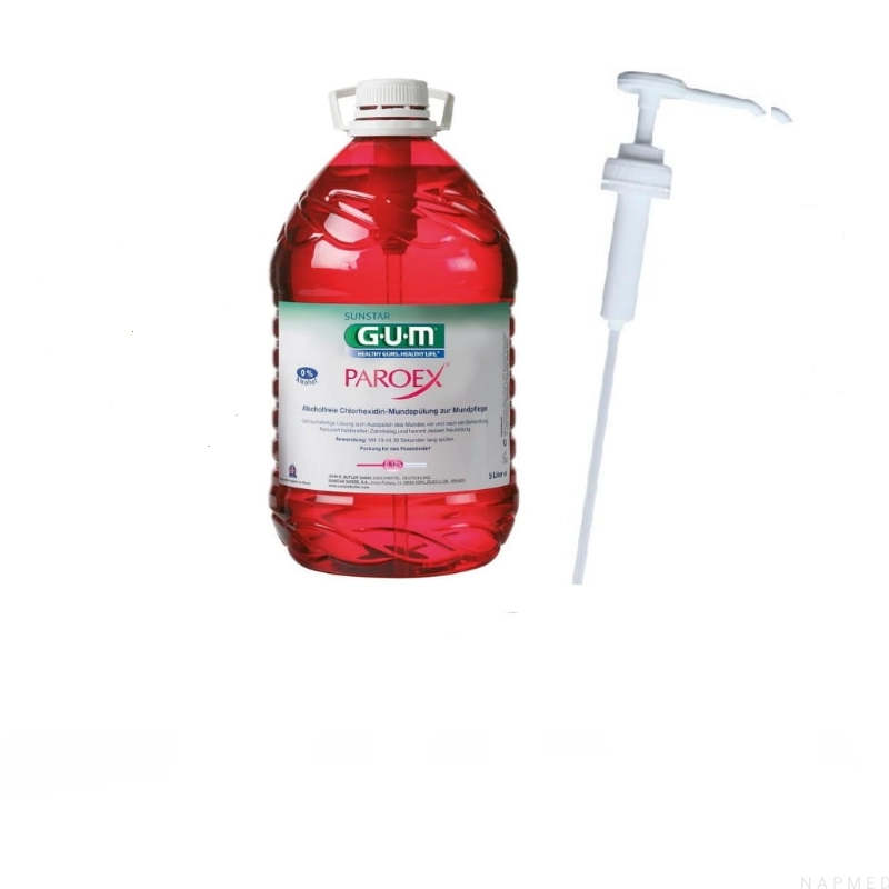 Antyseptyczna płukanka dentystyczna GUM ParoeX o przyjemnym, odświeżającym smaku polecana jest do zwalczania chorób przyzębia i dziąseł. Płyn do płukania jamy ustnej GUM Paroex zawiera chlorheksydynę w stężeniu 0,12%, która działa antyseptycznie oraz przyspiesza gojenie tkanek po zabiegach chirurgicznych w obrębie jamy ustnej. GUM ParoeX - skuteczny płyn z chlorheksydną, polecany na krwawienie i zapalenie dziąseł oraz paradontozę, odleżyny po pracach protetycznych i ortodontycznych, do profesjonalnej kontroli płytki nazębnej, aby poprawić zdrowie podrażnionej tkanki przyzębia, zarówno przed jak i po zabiegach operacyjnych, ekstrakcji zębów i osadzeniu implantów, odbudowuje tkanki dziąseł zwalczając również afty, pleśniawki, nadżerki i inne odczyny zapalne. Udoskonalony, podwójny system antybakteryjny płynu do płukania jamy ustnej GUM ParoeX Chlorheksydyna (0,12% CHX) - posiada udowodnione właściwości redukujące płytkę bakteryjną oraz pomaga odbudować zdrową tkankę dziąseł. Ma szerokie działanie antyseptyczne, długotrwale hamuje powstawanie oraz rozwój szkodliwych bakterii odpowiedzialnych za tworzenie się płytki bakteryjnej oraz problemy chorób przyzębia. Chlorek cetylopirydyniowy (CPC) - neutralizuje i wiąże się z toksycznymi prozapalnymi lipopolisacharydami (LPS) uwalnianymi podczas rozkładu bakterii. CPC zwiększa moc antybakteryjną chlorheksydyny (CHX). Niższa zawartość CHX w nowej formule GUM Butler ParoeX jest tak efektywna jak produkty z wyższą jej zawartością. Korzyścią są mniejsze skutki uboczne (np. przebarwianie). dodatkowo Witamina E - jeden z najpotężniejszych antyutleniaczy, aby pomóc zneutralizować wolne rodniki atakujące komórki tkanki dziąseł, AloeVera - uśmierza ból oraz łagodzi podrażnienia tkanek, Pro-witaminę B5 - środek tonizujący, pomagający rewitalizować śluzówkę. Płyn do płukania jamy ustnej GUM ParoeX nie zwiera alkoholu! Należy stosować nie dłużej niż 14 dni. Uwaga! Pacjenci stosujący płyn w kuracji jamy ustnej nie powinni używać jednocześnie past zawierających SLS (Sodium Lauryl Sulfate), który obniża efekt działania chlorheksydyny. Seria produktów z chlorheksytyną GUM Paroex Codzienna ochrona:GUM Butler ParoeX 500ml (1702) - płyn z chlorheksydyną 0,06% CHX GUM Butler ParoeX 75ml (1750) - pasta z chlorheksydyną 0,06% CHX Terapia krótkoterminowa: GUM Butler ParoeX 300ml (1784) - płyn z chlorheksydyną 0,12% CHX GUM Butler ParoeX 75ml (1790) - pasta z chlorheksydyną 0,12% CHX Intensywne działanie miejscowe: GUM Butler ParoeX 50ml (1789) - spray z chlorheksydyną 0,20%.CHX