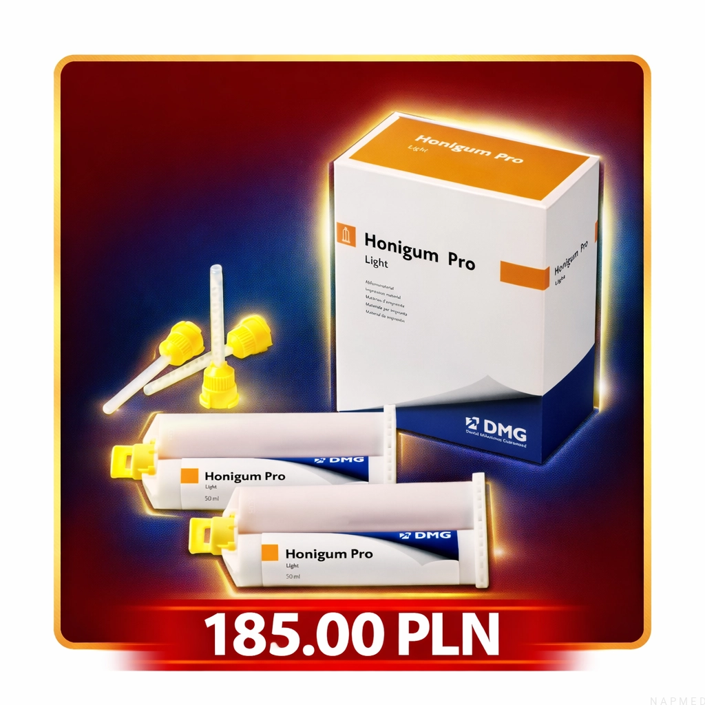 Honigum AM Light to nowoczesna, precyzyjna, a-silikonowa masa wyciskowa do drugiej warstwy w wyciskach jedno- i dwuczasowych. Zastosowanie: wyciski pod korony, mosty, inlaye, onlaye, doskonała płynność, nadzwyczajna stabilność, wyważona hydrofilność. Opakowanie: 2 x 50 ml.