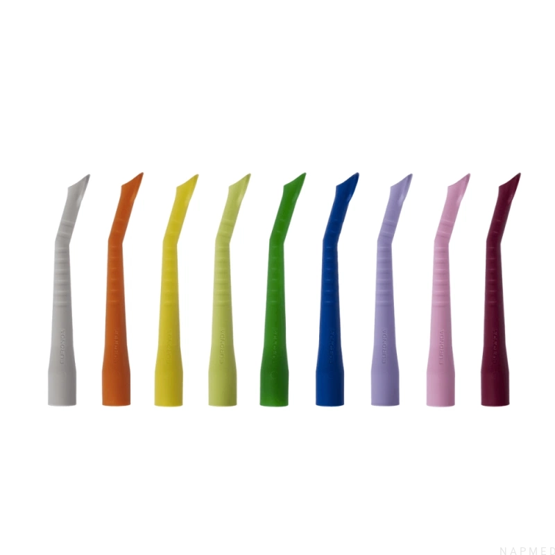 Uniwersalne końcówki do ssaka. Posiadają ergonomiczny, antypoślizgowy uchwyt ułatwiający pracę. Pasują do wszystkich rodzajów systemów ssących. Mogą być sterylizowane w autoklawach do 134°C. Duży wybór kolorów. Opakowanie zawiera 10 końcówek. Wymiary długość 114mm średnica 16mm