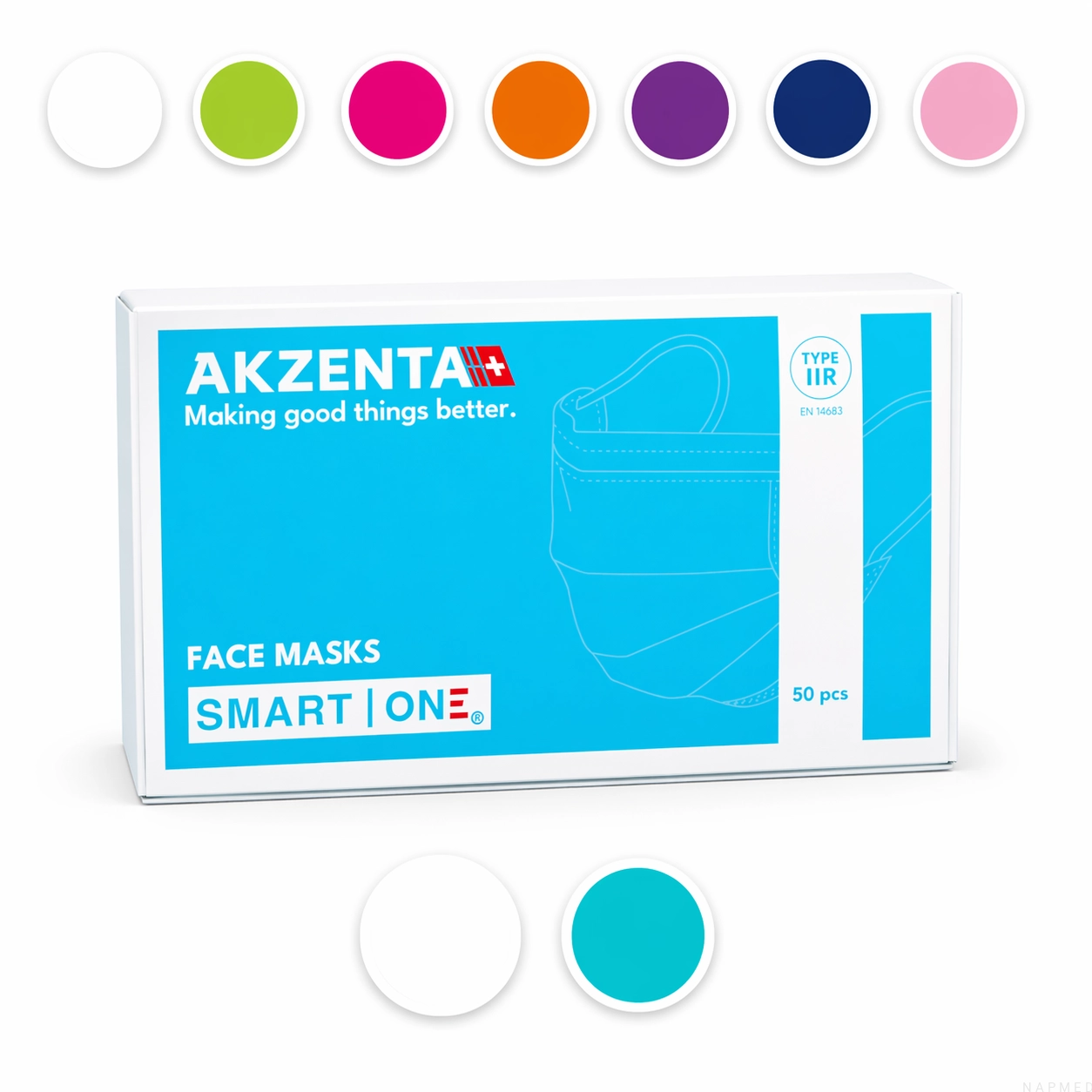 Profesjonalne maski medyczne AKZENTA SMART ONE to wysokiej jakości jednorazowe maseczki ochronne przeznaczone do codziennego użytku w gabinetach stomatologicznych, medycznych oraz kosmetycznych. Zapewniają skuteczną ochronę, komfort noszenia i estetyczny wygląd dzięki szerokiej gamie kolorów.