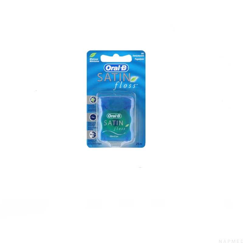 Nić dentystyczna Oral-B 25m z satynową strukturą o smaku miętowym zapewniająca na długi czas uczucie świeżości. Dwuwarstwowa struktura nici sprawia, że produkt jest wytrzymały co daje świetne rezultaty. Gładka powierzchnia sprawia, że nić nie podrażnia dziąseł. Właściwości: odporna na strzępienie, zrywanie, rozciąganie.