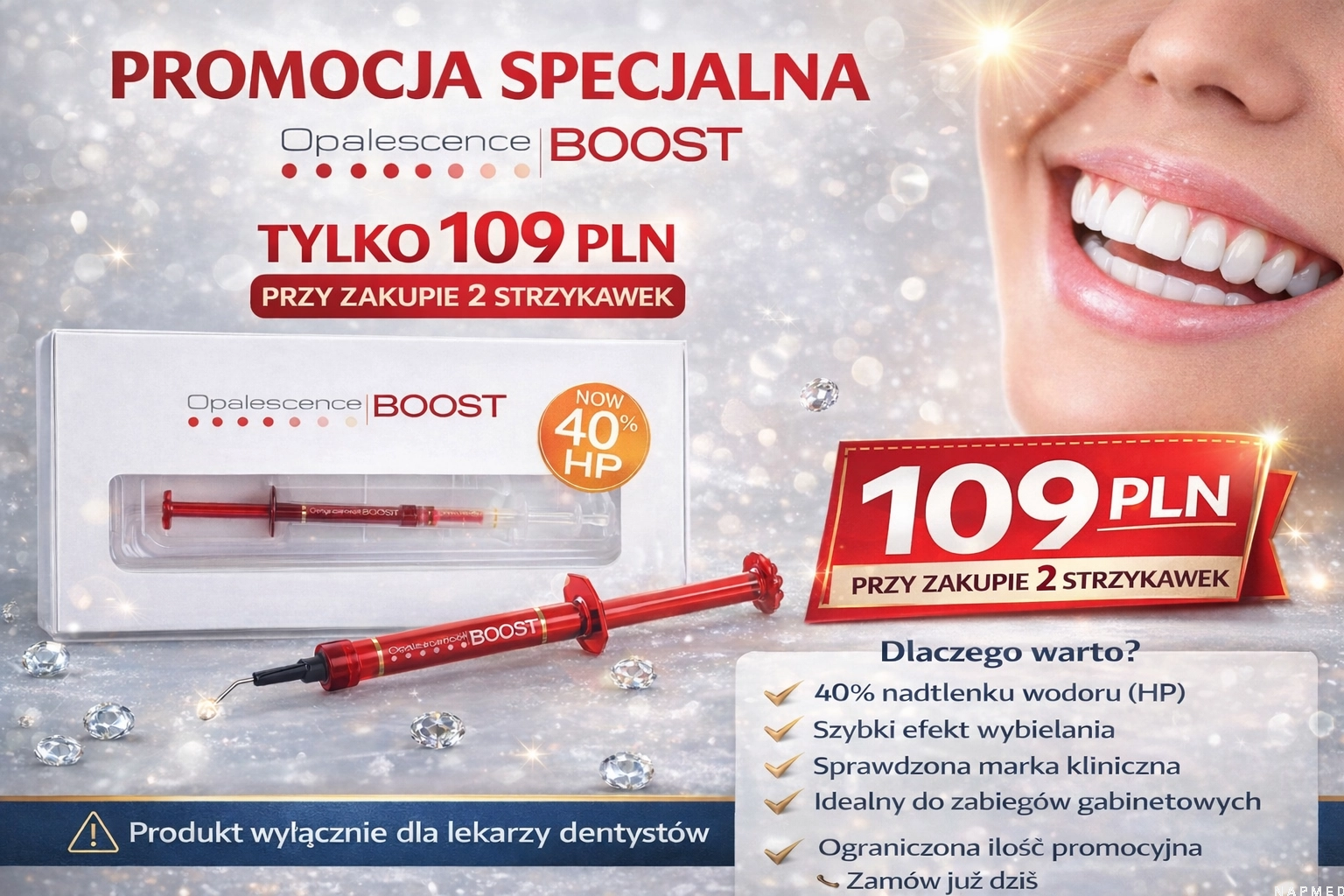 Jest aktywowanym chemicznie, opartym na 40% nadtlenku wodoru, żelem do profesjonalnego wybielania i odbarwiania tkanki zębowej. Chemiczna aktywacja Opalescence Boost umożliwia osiągnięcie maksymalnej efektywności środka wybielającego, a dodatkowa aktywacja światłem nie jest konieczna.