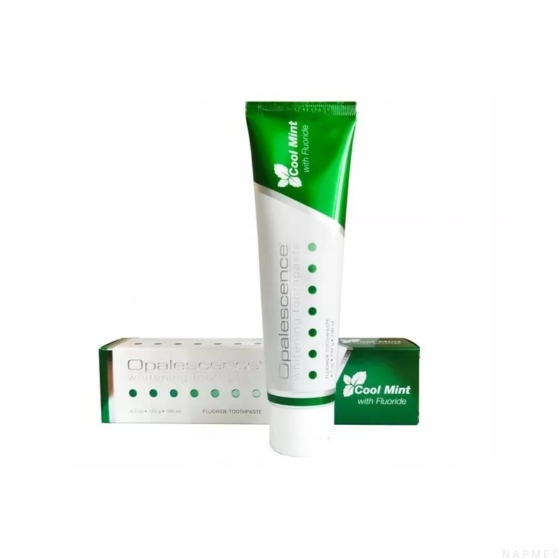 Pasta do zębów Opalescence zapobiega próchnicy i usuwa osad nazębny; ma podwyższoną zawartość fluoru. Obniża ścieralność, zapobiega niszczeniu powierzchni szkliwa i wypełnień. Pasta posiada działanie wybielające. Pozostawia miętowy smak w ustach i uczucie świeżości. Zawiera naturalne składniki. Pasta Opalescence Whitening Toothpaste jest najlepsza do wybielania zębów i podtrzymywania efektów zabiegu wybielania.