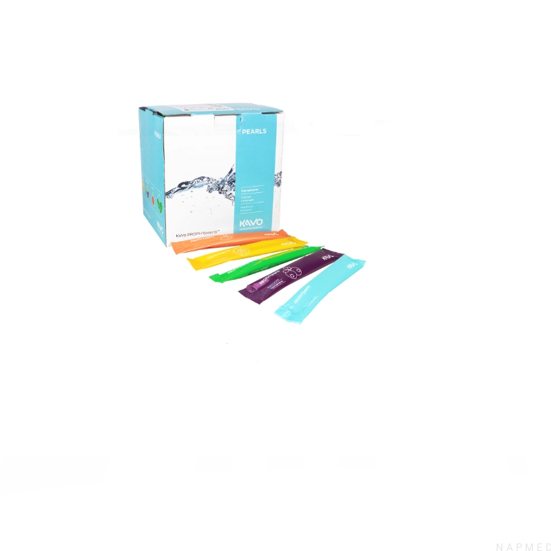 KaVo PROPHYpearls – wyjątkowo solidny i delikatny proszek do piaskarek, który istnieje niezmiennie na rynku od 10 lat. Proszek KaVo dzięki swojemu kulistemu kształtowi, zapewnia doskonały kontakt z powierzchnią zęba, co skutkuje znacznie wydajniejsza pracą niż w przypadku użycia innych proszków. Skuteczne czyszczenie powierzchni zęba zostało osiągnięte dzięki nieskończonej ilości punktów stycznych PROPHYpearls. Brak ostrych krawędzi sprawia, że produkt czyści powierzchnię zęba bardzo delikatnie i mało inwazyjnie, jest również niezwykle delikatny dla dziąseł. Proszek podnosi poziom pH, co w efekcie zmniejsza kwasowość. Zastosowanie: usuwanie przebarwień i osadów nazębnych w szybki i bezbolesny sposób, polerowanie po zabiegu usunięcia kamienia, oczyszczanie szkliwa przed wykonaniem zabiegu lakowania bruzd, przygotowanie adhezyjne szkliwa przed wypełnieniem materiałem kompozytowym, oczyszczanie powierzchni implantów, oczyszczanie szkliwa przed wypełnianiem ubytków.