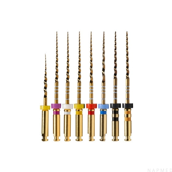 Zastosowanie zaawansowanej technologii obróbki metalu w pilnikach ProTaper Gold stanowi różnicę, którą można poczuć i zobaczyć gołym okiem. A to dzięki temu, że pilniki obrotowe ProTaper Gold mają identyczną geometrię jak ProTaper Universal, ale są bardziej wszechstronne. Jest to szczególnie ważne w pilnikach kształtujących kanał podczas poruszania się po trudnych krzywiznach w obszarze wierzchołka. Dzielą się na pilniki do kształtowania kanału zęba, które zaprojektowane są do pracy techniką szczotkowania: - SX – 19 mm - S1 – 21, 25, 31 mm - S2 – 21, 25, 31 mm Oraz na pilniki do opracowania końcowego, które są bardziej fleksyjne, zatem umożliwiają sprawne opracowanie każdego kanału, dopełniając procedurę leczenia endodontycznego: - F1 – 21, 25, 31 mm - F2 – 21, 25, 31 mm - F3 – 21, 25, 31 mm - F4 – 21, 25, 31 mm - F5 – 21, 25, 31 mm