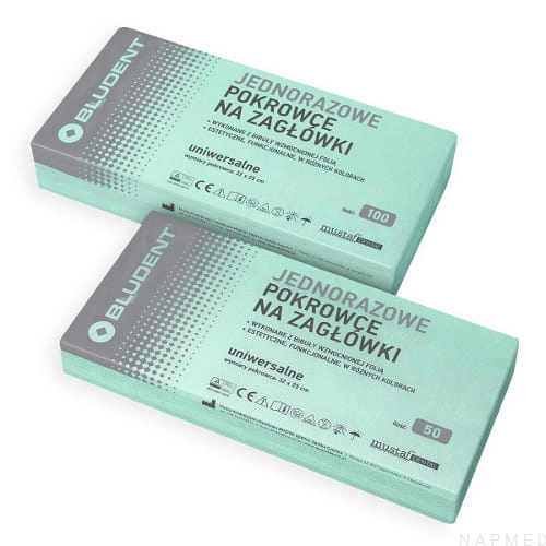 Jednorazowe uniwersalne składane pokrowce na zagłówki. Wyprodukowane z bibuły wzmocnionej folią PE, odporne na rozerwanie. Rozmiar pokrowca: 32 cm x 25 cm.