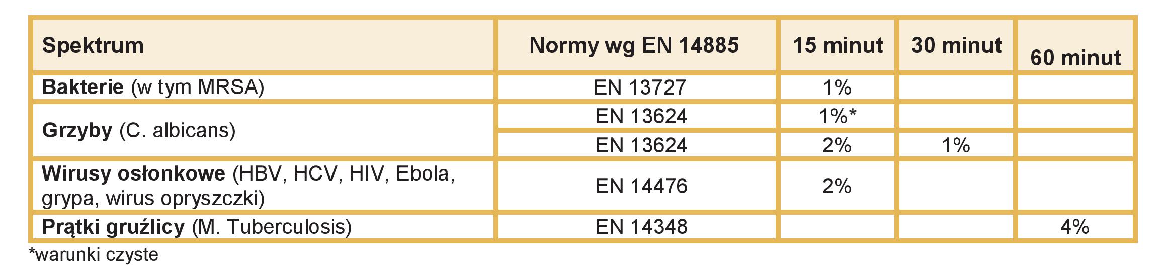 - przebadany zgodnie z normami dla środków dezynfekcyjnych (EN 14885),