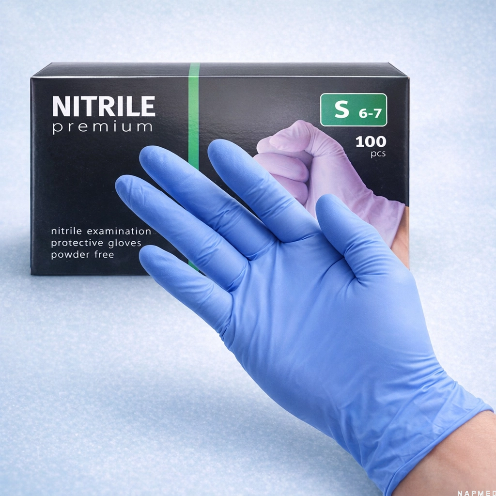 Diagnostyczne, ochronne, bezlateksowe, nitrylowe rękawice jednorazowego użytku, bezpudrowe, niesterylne.