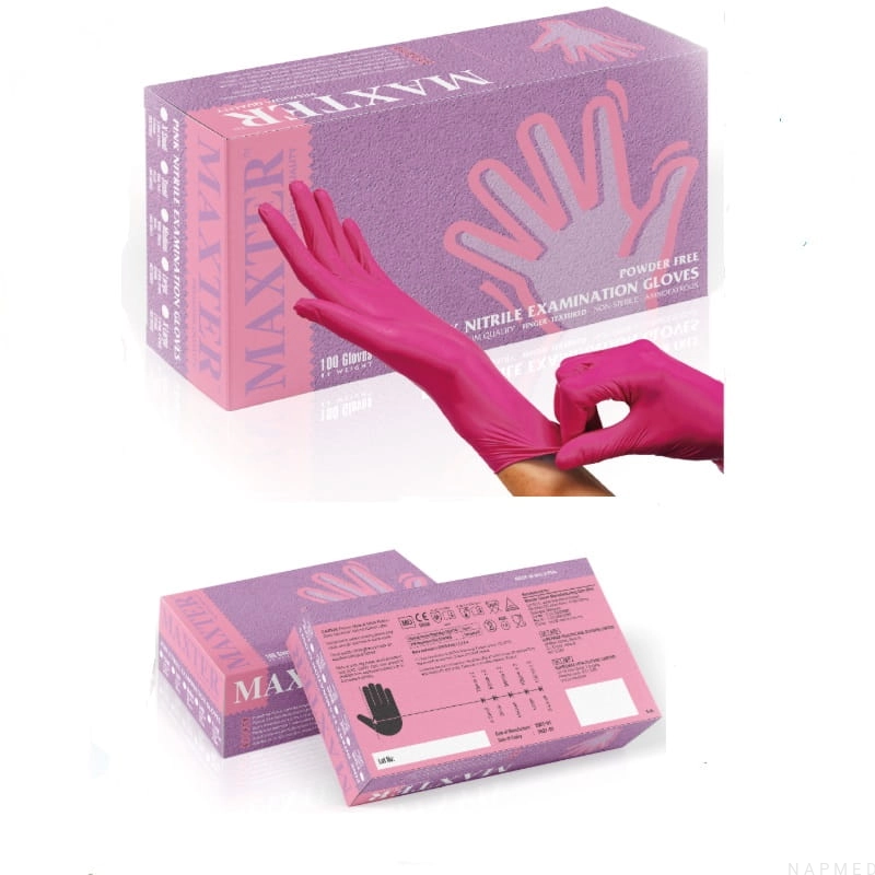 Opakowanie zawiera: Rękawiczki nitrylowe różowe MAXTER 100 szt. w wybranym wariancie.